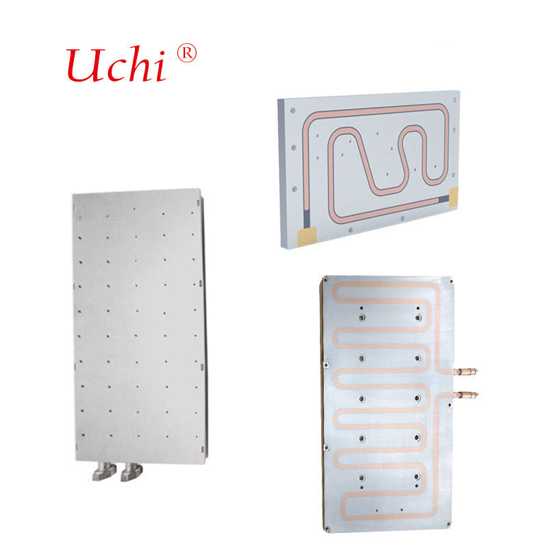 Komponen inti: pelat bawah (aluminium/tembaga, langsung dilampirkan ke sumber panas), saluran aliran internal (serpentine/paralel/mikrokanal), pelat penutup (saluran aliran tertutup),dan sendi masuk dan keluar cairan; cairan pendingin yang biasa digunakan adalah air deionisasi, campuran air-glikol.